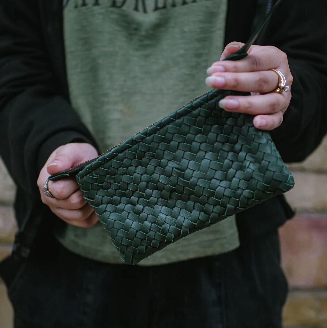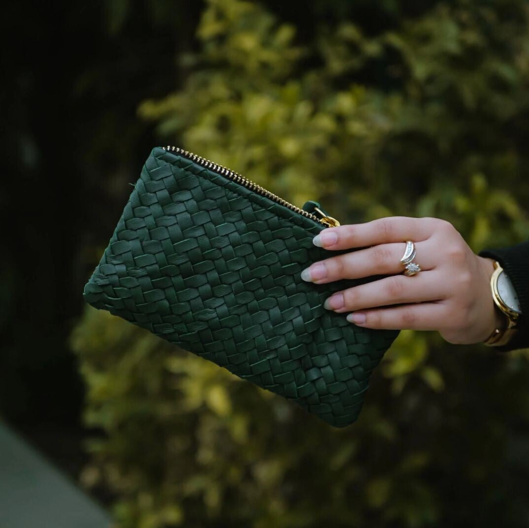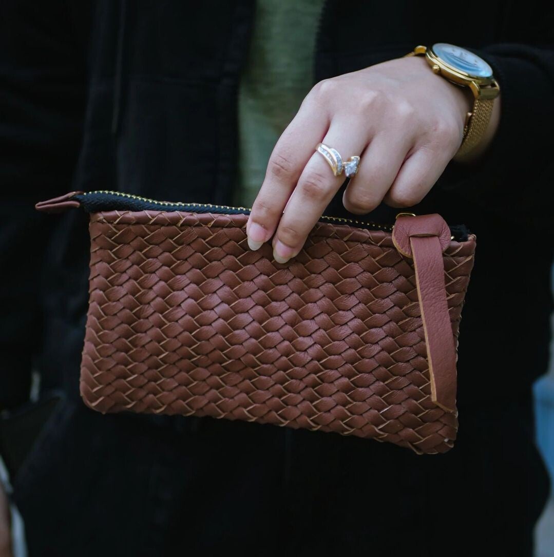 Featuring a secure zipper closure, the Coffer Mini Handwoven Leather Clutch is perfect for carrying essentials like your phone, keys, cards, and small accessories. Its timeless design makes it a versatile, must-have accessory for any wardrobe.
