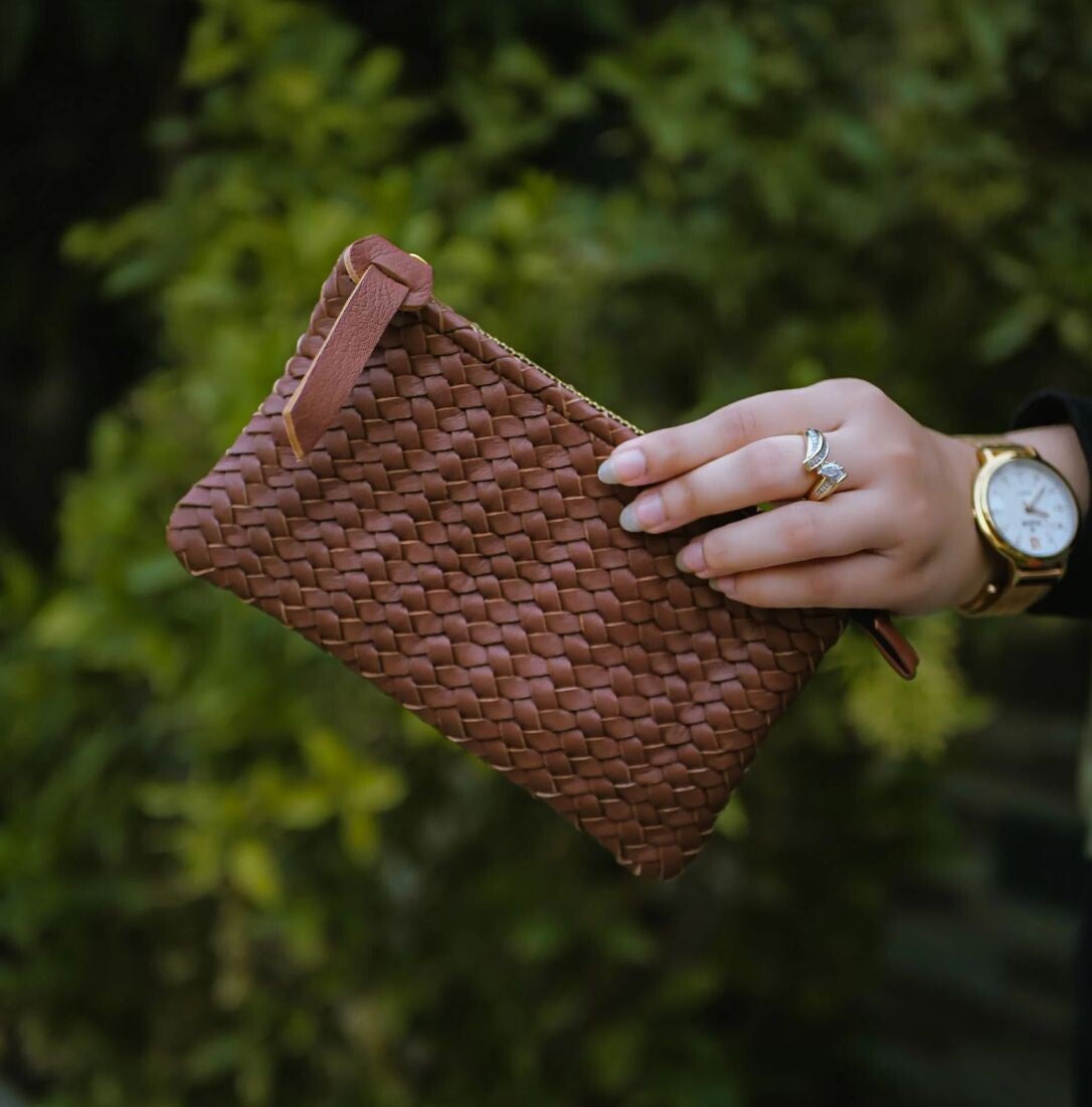 Handwoven Leather Clutch Bag – Elegant & Timeless Accessory